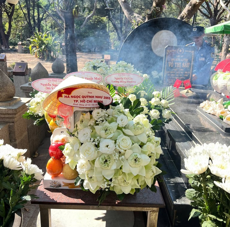 🌿 Viếng mộ Cô Sáu tại Côn Đảo là một trong những hành trình tâm linh thiêng liêng được nhiều du khách lựa chọn khi đến đảo. Để chuyến đi trọn vẹn và đúng nghi lễ, việc chuẩn bị đồ lễ Côn Đảo đầy đủ, đúng cách là điều vô cùng quan trọng. Mỗi mâm lễ dâng Cô Sáu hay tại tượng đài các chiến sĩ đều mang ý nghĩa riêng, thể hiện lòng thành kính và những ước nguyện về bình an, tài lộc. Dưới đây là tổng hợp chi tiết các mâm lễ Cô Sáu & Tượng đài các Chiến Sĩ Côn Đảo phổ biến, giúp bạn dễ dàng chuẩn bị và đi lễ đúng chuẩn nhất.